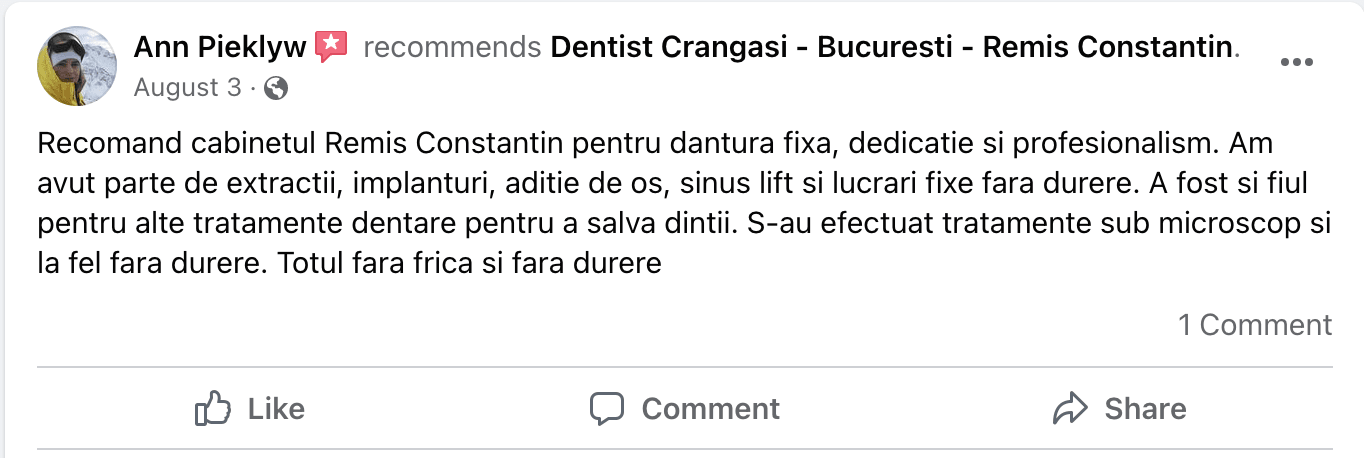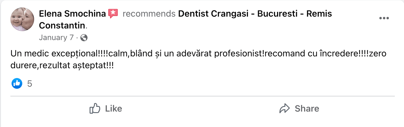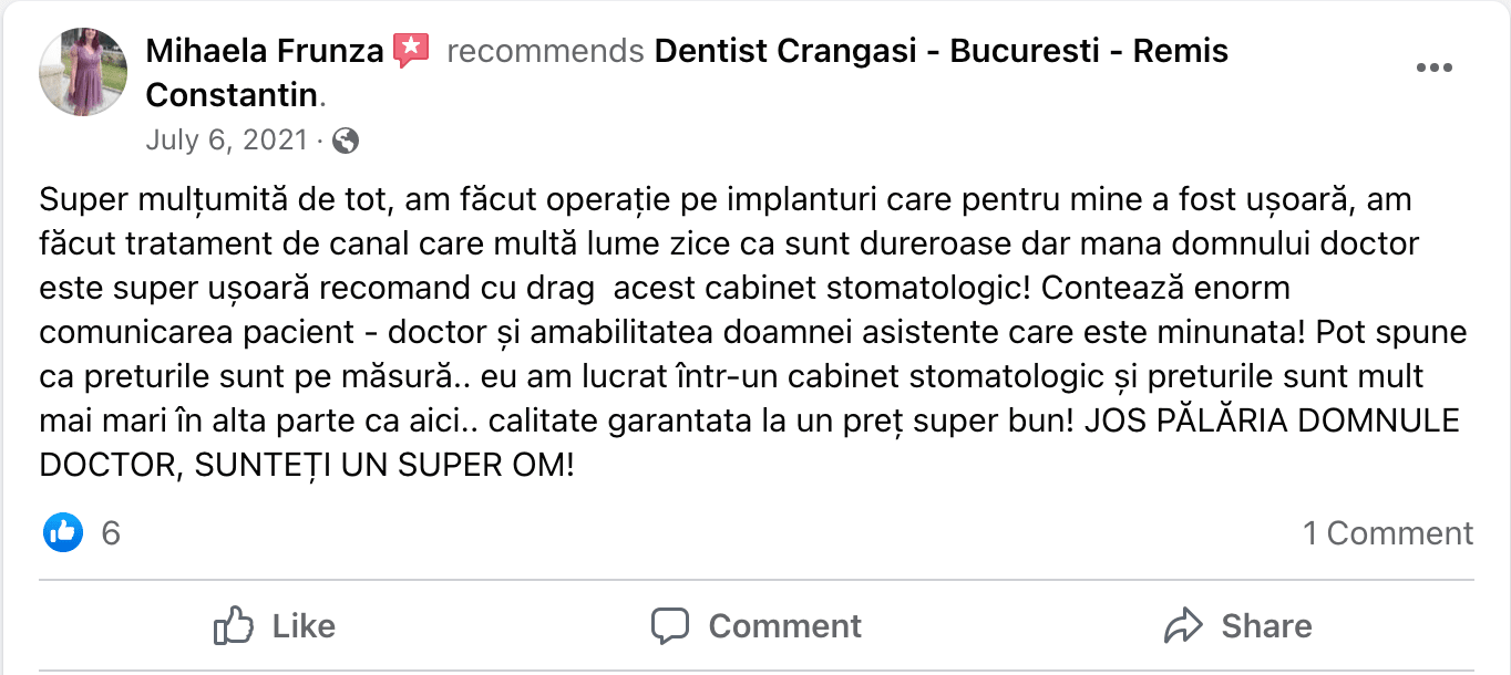 pe care le merită atunci calcă pragul cabinetului stomatologic din Crângași, București.
